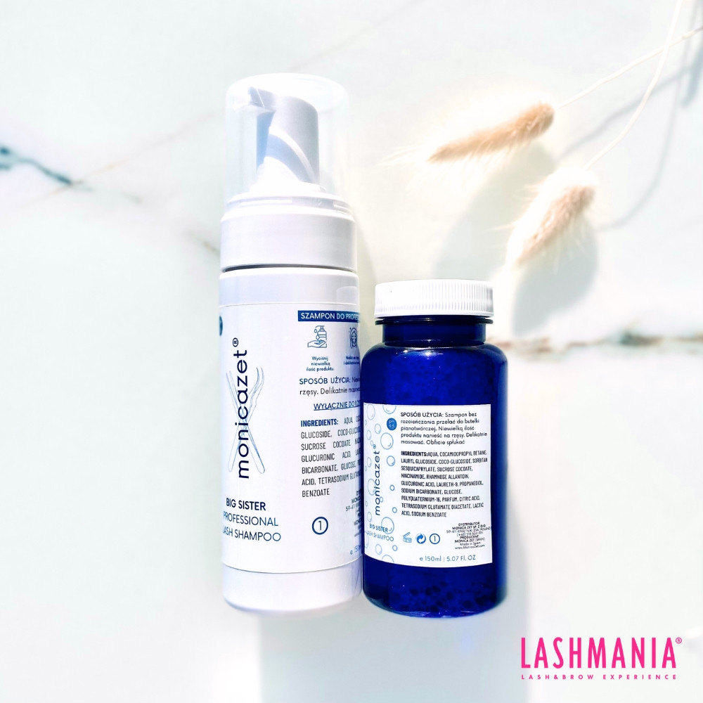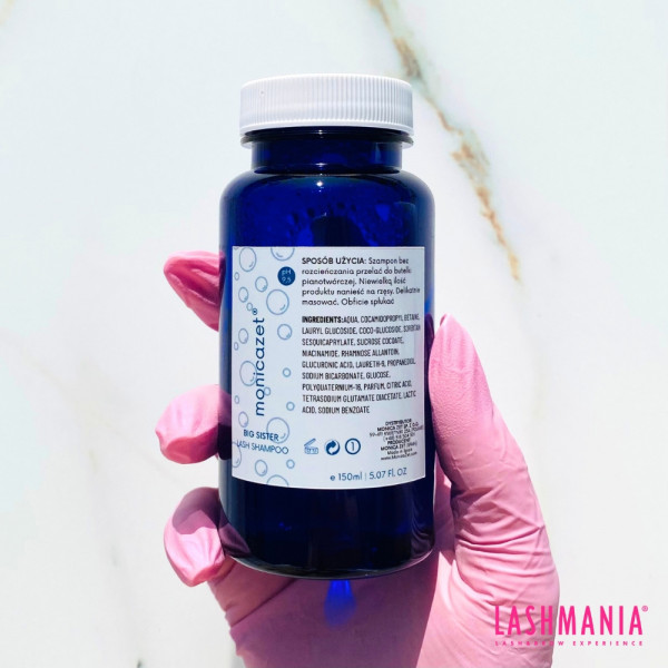 Lo shampoo Big Sister prepara le ciglia naturali al trattamento di extension ciglia, garantendo la massima aderenza e una tenuta durevole.