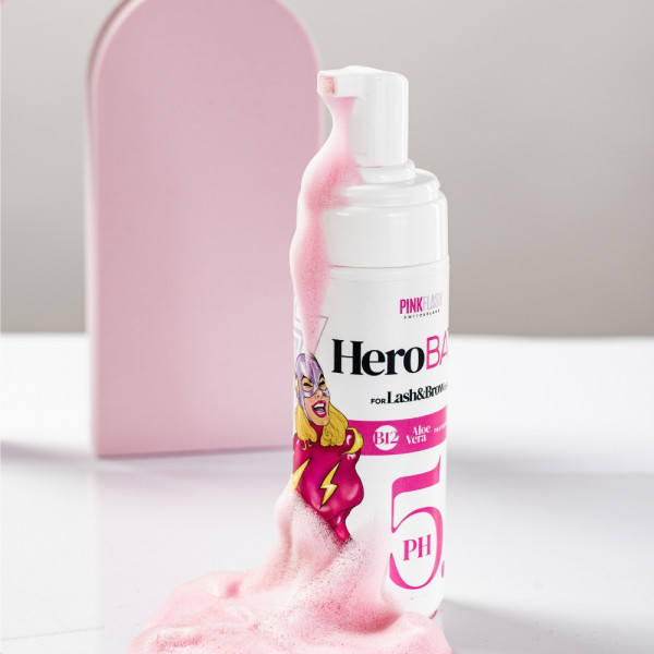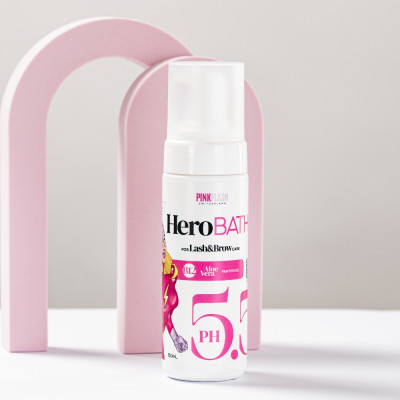 HERO BATH by Pink Flash è un detergente professionale al 100% biologico, appositamente progettato per purificare delicatamente, nutrire e proteggere ciglia e sopracciglia, mantenendo la loro forza e idratazione naturali. Formulato con Aloe Vera, Camomilla Blu e Pantenolo, garantisce una pulizia profonda ma delicata, rendendolo il trattamento ideale prima delle procedure di Lash & Brow Lifting.