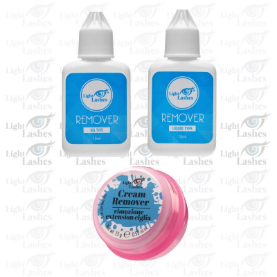 - Remover Liquido: la consistenza liquida consente una rimozione quasi istantanea. Da utilizzare esclusivamente da professioniste molto esperte, non adatto per clienti con occhi delicati;
