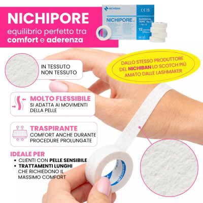 Marca: NICHIBANNICHIPORE è il nastro professionale di alta qualità progettato per offrire massimo comfort, precisione e controllo durante i trattamenti di extension ciglia e lash lifting.