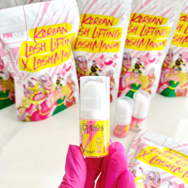 - Step 1 – Flash Lift (5 ml): formulato con Cisteina HCl e Cisteamina HCl per ammorbidire delicatamente la struttura del pelo, garantendo una curvatura precisa e controllata. Arricchito con Pantenolo, Collagene Idrolizzato e Cheratina, nutre e protegge durante la fase di lifting;