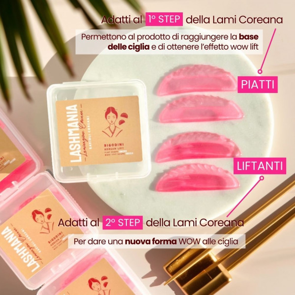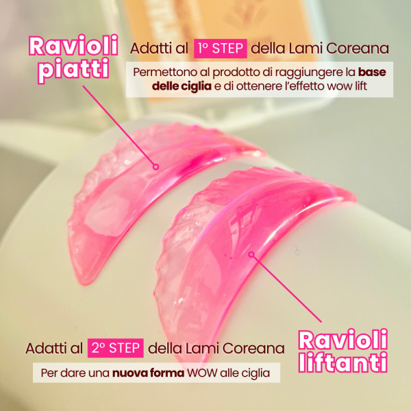 Il set Bigodini Ravioli coreani by Lashmania è stato studiato per offrire un risultato impeccabile nella laminazione coreana WOW, combinando due tipologie di bigodini che lavorano in perfetta sinergia durante il 1° e 2° step del trattamento.