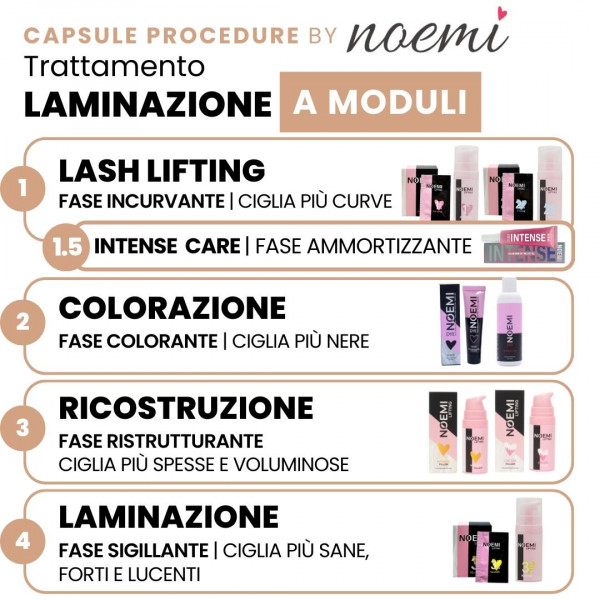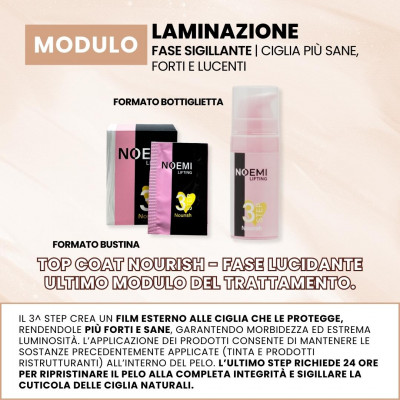 Marca: NOEMILa linea di prodotti per laminazione by NOEMI, consente di donare ai peli cigliari e sopraccigliari la direzione desiderata, fissarne la curvatura e ripristinarne la struttura.