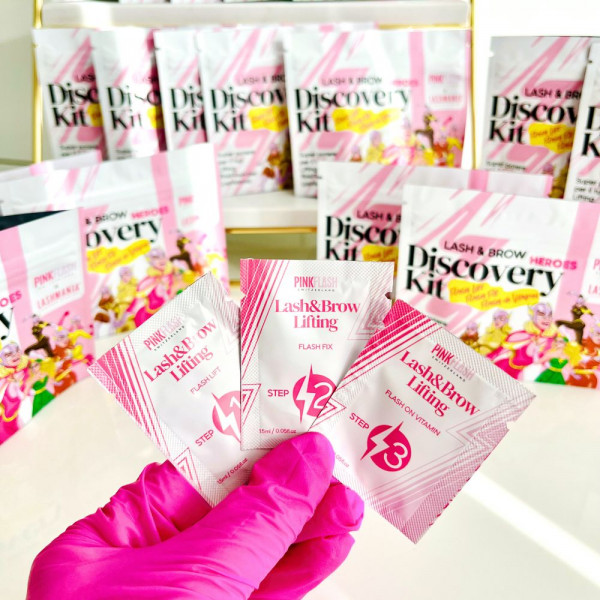 Nasce il Discovery kit Kit Pink Flash x Lashmania, il kit compatto con 3 step per laminazione classica in formato bustina.