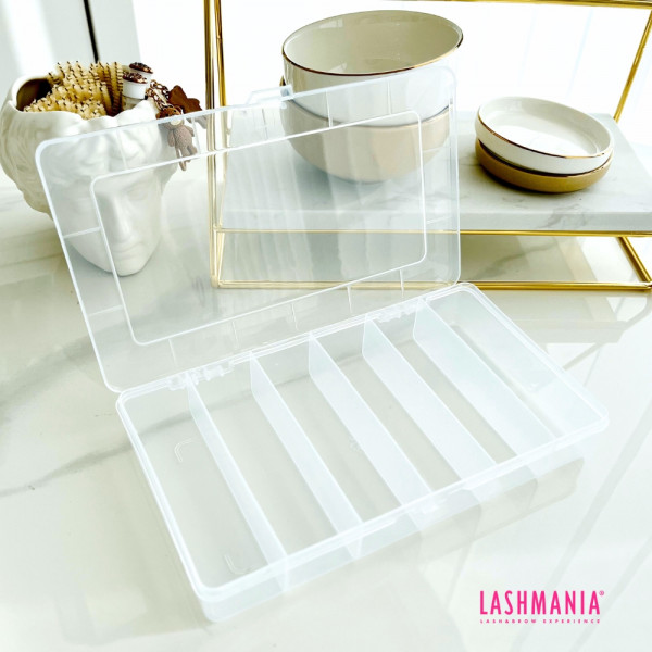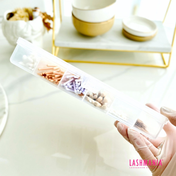 Un accessorio essenziale per lashmaker e browartist che desiderano lavorare con precisione, rapidità e massima igiene, grazie alle sue 6 vaschette separate che permettono di suddividere strumenti e piccoli prodotti in modo chiaro e professionale.