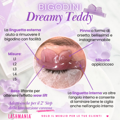 🐻 "Ogni bigodino DREAMY TEDDY accompagna le ciglia verso un sollevamento perfetto con un tocco di dolcezza: la pinna a forma di orsetto rende il tuo trattamento adorabile, divertente e super instagrammabile!"