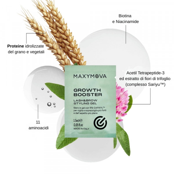 Il Growth Booster by Maxymova è un siero in gel professionale per ciglia e sopracciglia, studiato per l’uso quotidiano, in particolare dopo trattamenti come laminazione o extension.