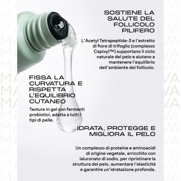 - Dopo la laminazione, aiuta a mantenere la curvatura e la forma dei peli durante la giornata.