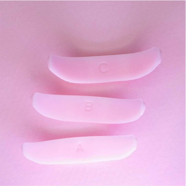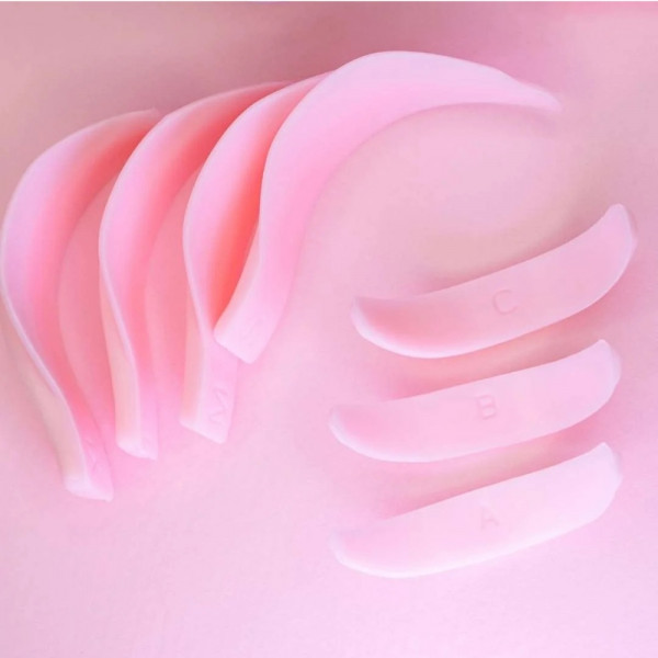 - Contenuto della confezione – quattro paia per la palpebra superiore (S, M, L, XL) e tre per la palpebra inferiore (A, B, C), per adattarsi a ogni cliente e tipo di ciglia.