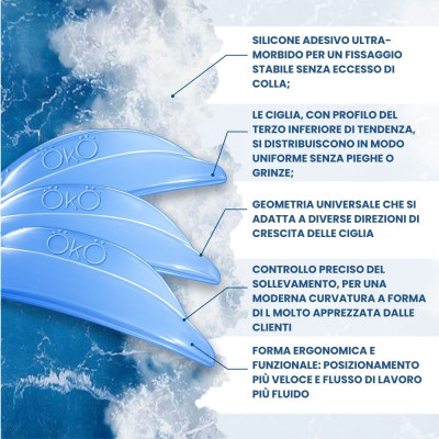 I Bigodini OCEAN by OKO Lash&Brow sono bigodini professionali in silicone progettati per garantire un sollevamento preciso dalla radice con effetto pulito, moderno e naturale.