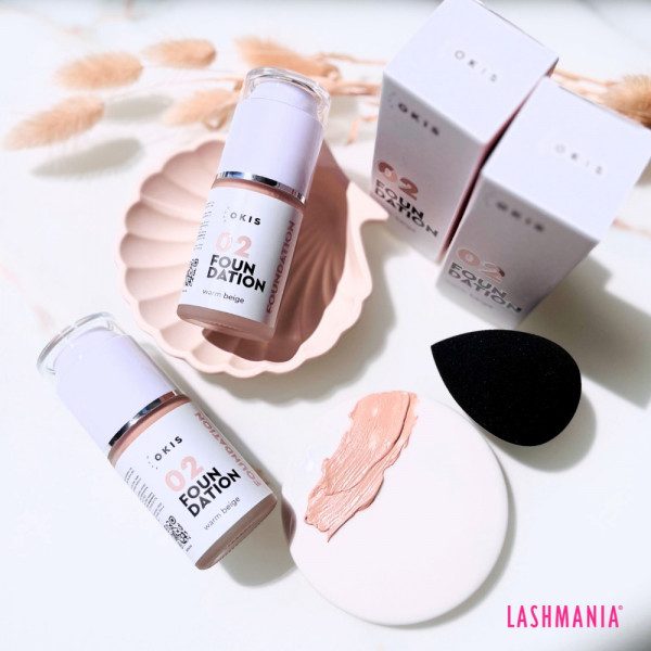 - Distribuisci il fondotinta: Versa una piccola quantità di fondotinta sul dorso della mano o su un palette per fondotinta. Utilizza BLENDER OKIS, per applicare il fondotinta sul viso. Per ottenere l'effetto più uniforme puoi inumidire il blender;