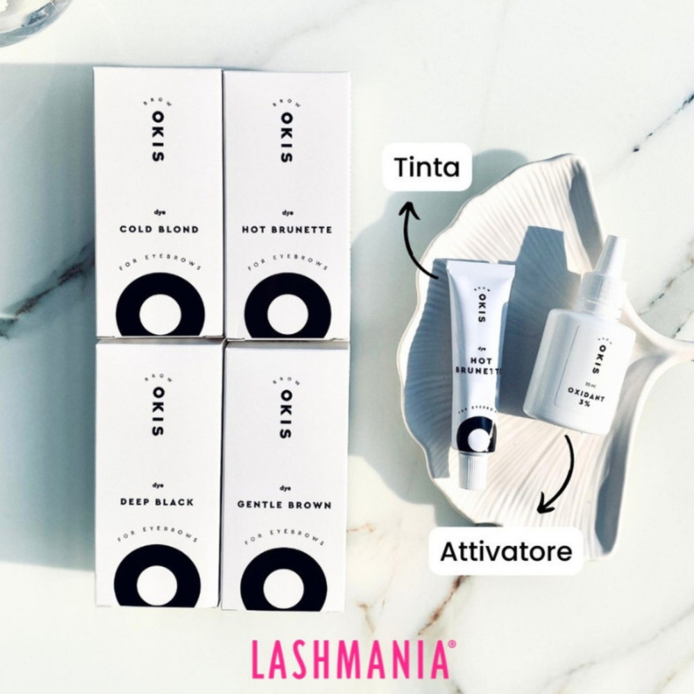 La tinta litografica by Okis Brow dona alle sopracciglia un colore intenso e a lunga durata. Una confezione contiene 1 tubetto di tinta litografica da 15ml + 1 fialetta di ossidante 3% da 20ml. Disponibile in 4 tonalità: cold blonde, deep black, gentle brown, hot brunette.