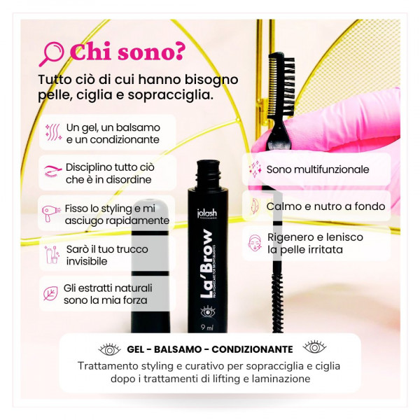 Marca: JoLashLABROW è la soluzione innovativa che funge da gel, balsamo e condizionante per ciglia e sopracciglia. Ideato per realizzare lo styling e nutrire allo stesso tempo, specialmente dopo i trattamenti chimici, come la laminazione delle sopracciglia o il lifting delle ciglia, che risultano secche e richiedono un'idratazione aggiuntiva.