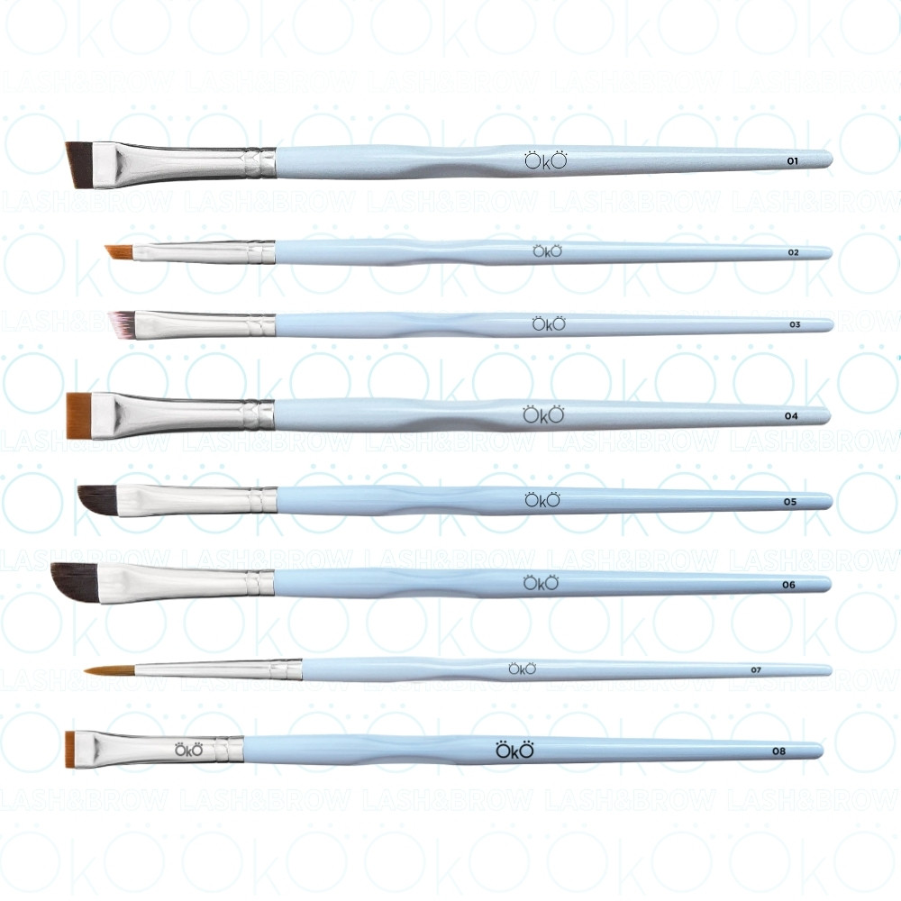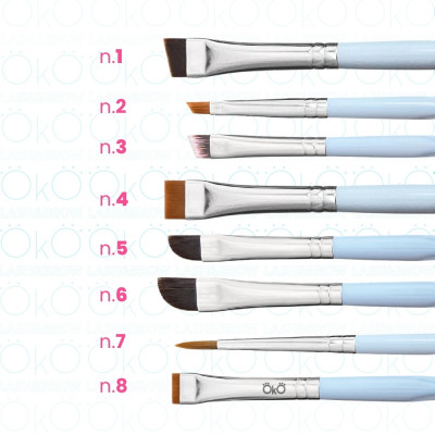 La linea completa di pennelli professionali by Oko sono progettati per offrire precisione, comfort e massima resa nei trattamenti di colorazione e laminazione sopracciglia.