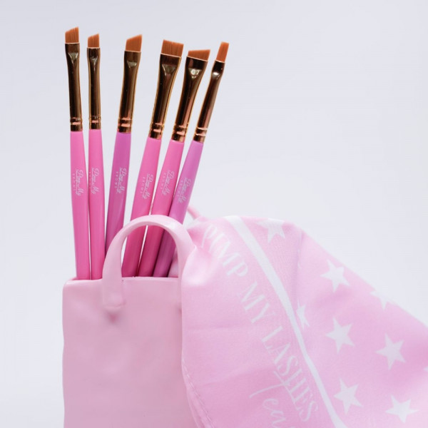 La linea Pimp My Lashes PRO è composta da 6 pennelli professionali studiati per garantire precisione assoluta nella laminazione, colorazione e definizione delle sopracciglia.