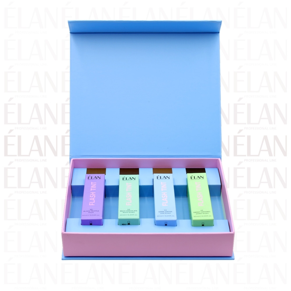 Flash Tint Kit ÉLAN è un kit professionale di colorazione diretta senza ossidante, ideale per ottenere sopracciglia definite, uniformi e dall’effetto naturale. Include 4 tonalità miscelabili tra loro per creare risultati completamente personalizzati. La formula è arricchita con attivi idratanti e protettivi, perfetta anche per trattamenti post-laminazione.