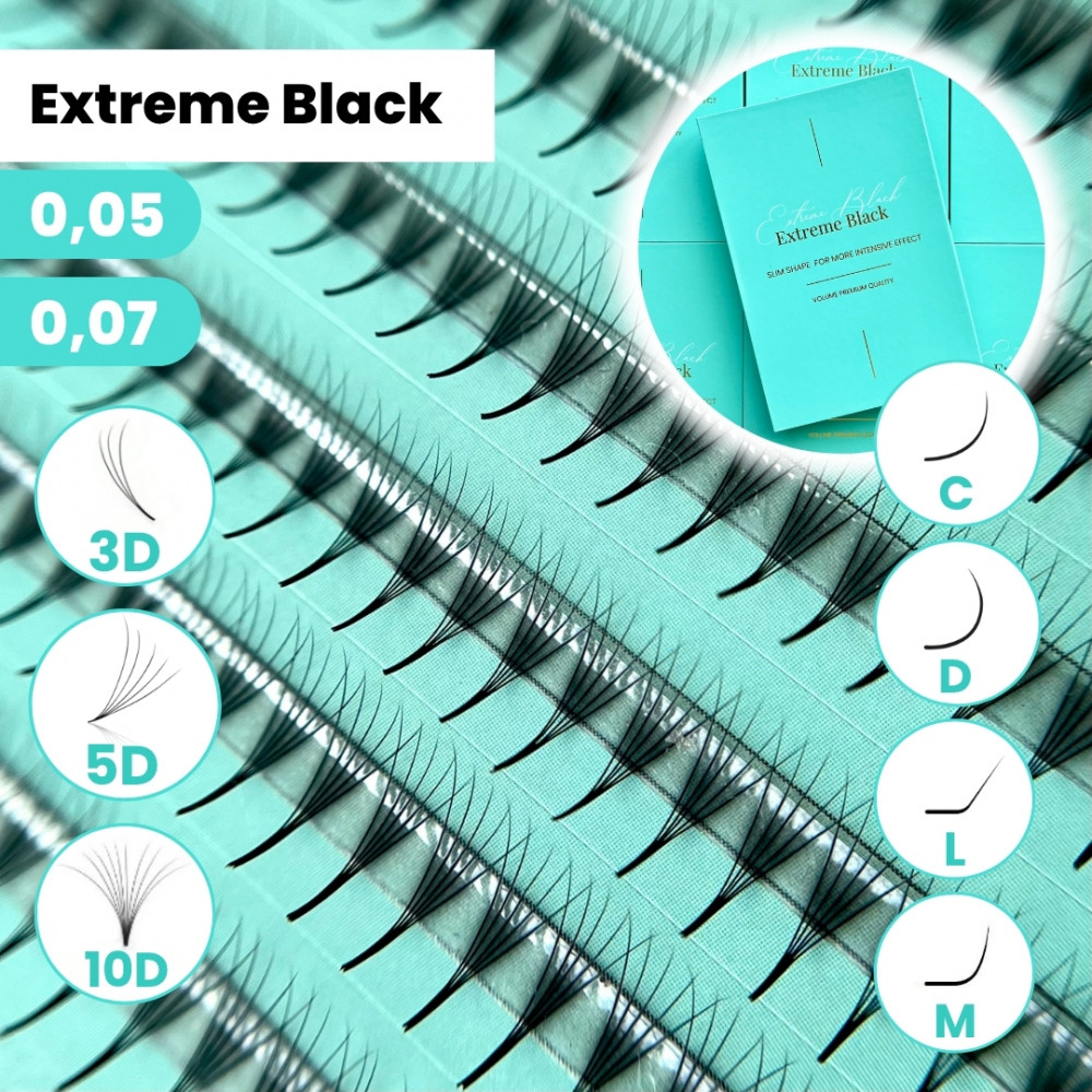 EXTREME BLACK 3D/5D/10D 0,05, 0,07 C, D, L, M VENTAGLI CIUFFETTI PRONTI